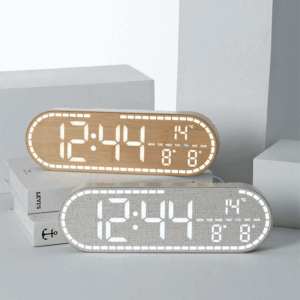 Oval Wooden or Fabric Finishing Big LED Display Alarm Table or Wall Clock SH8053