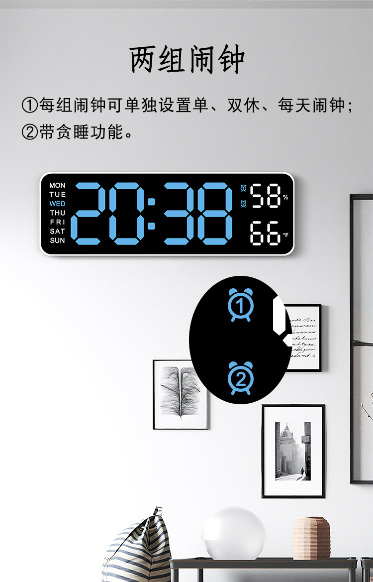 LED Dual Alarm Clock with Indoor Temperature and Humidity and Adjustable LED Display Brightness SH5503